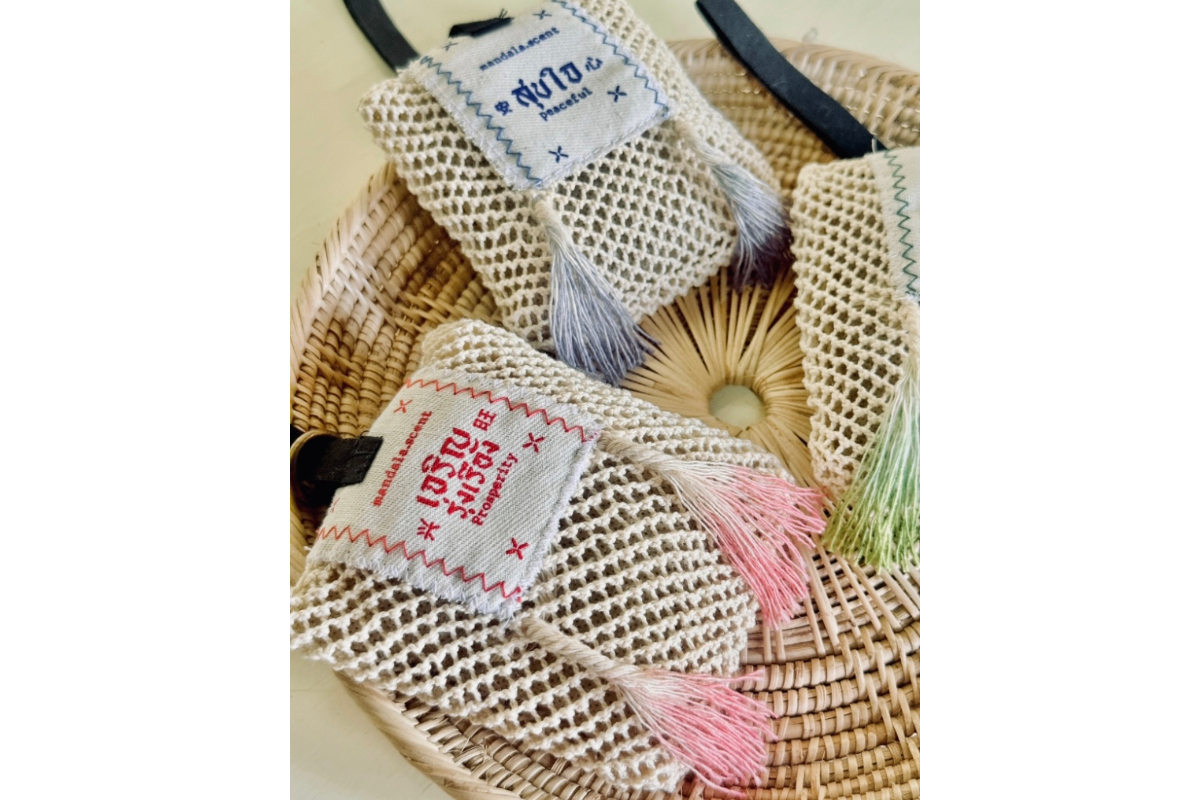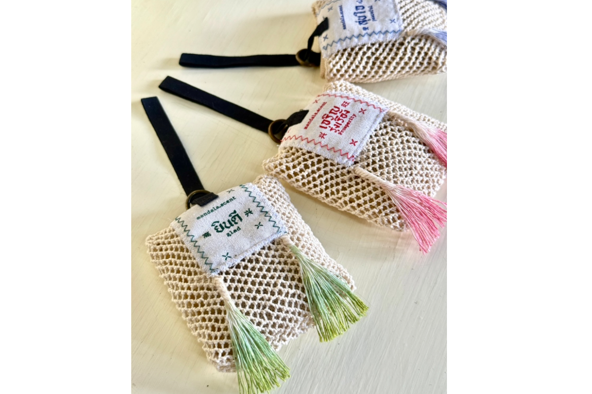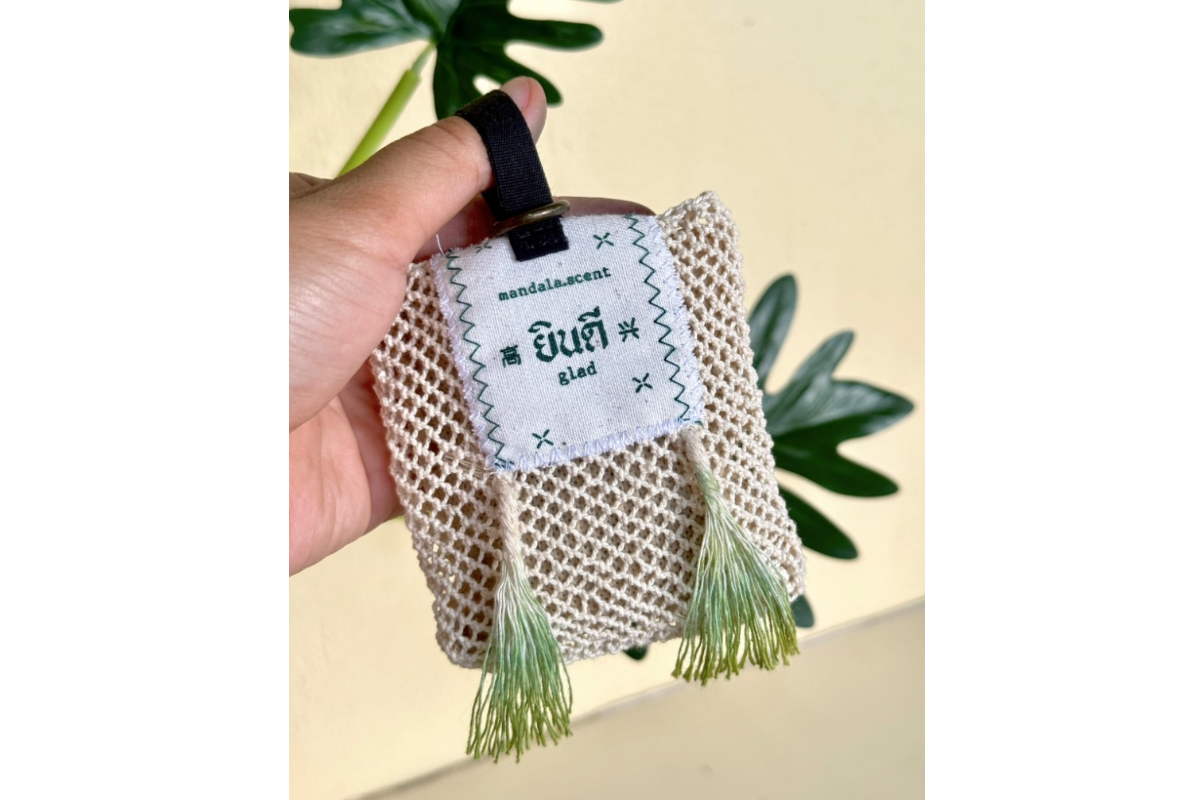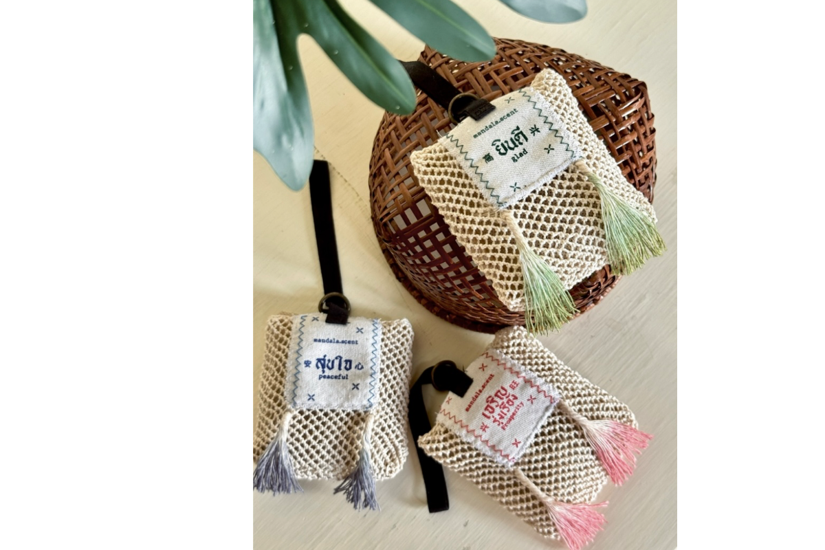• ผลิตภัณฑ์ “ถุงหอม” ของเราเกิดจากการออกแบบร่วมกับชุมชนท้องถิ่น ซึ่งเป็นผู้ลงมือทำถุงหอมด้วยมือทุกใบ โดยเริ่มตั้งแต่การเหลาไม้ไผ่เป็นเส้นเล็ก ๆ เพื่อนำมาถักถุงหอมแต่ละใบ ทุกชิ้นจึงเป็นงานฝีมือแท้จากช่างฝีมือในชุมชน ผสมผสานเทคนิคดั้งเดิมเข้ากับงานออกแบบอย่างใส่ใจที่ยังคงรักษาเอกลักษณ์ดั้งเดิมไว้อย่างลงตัว