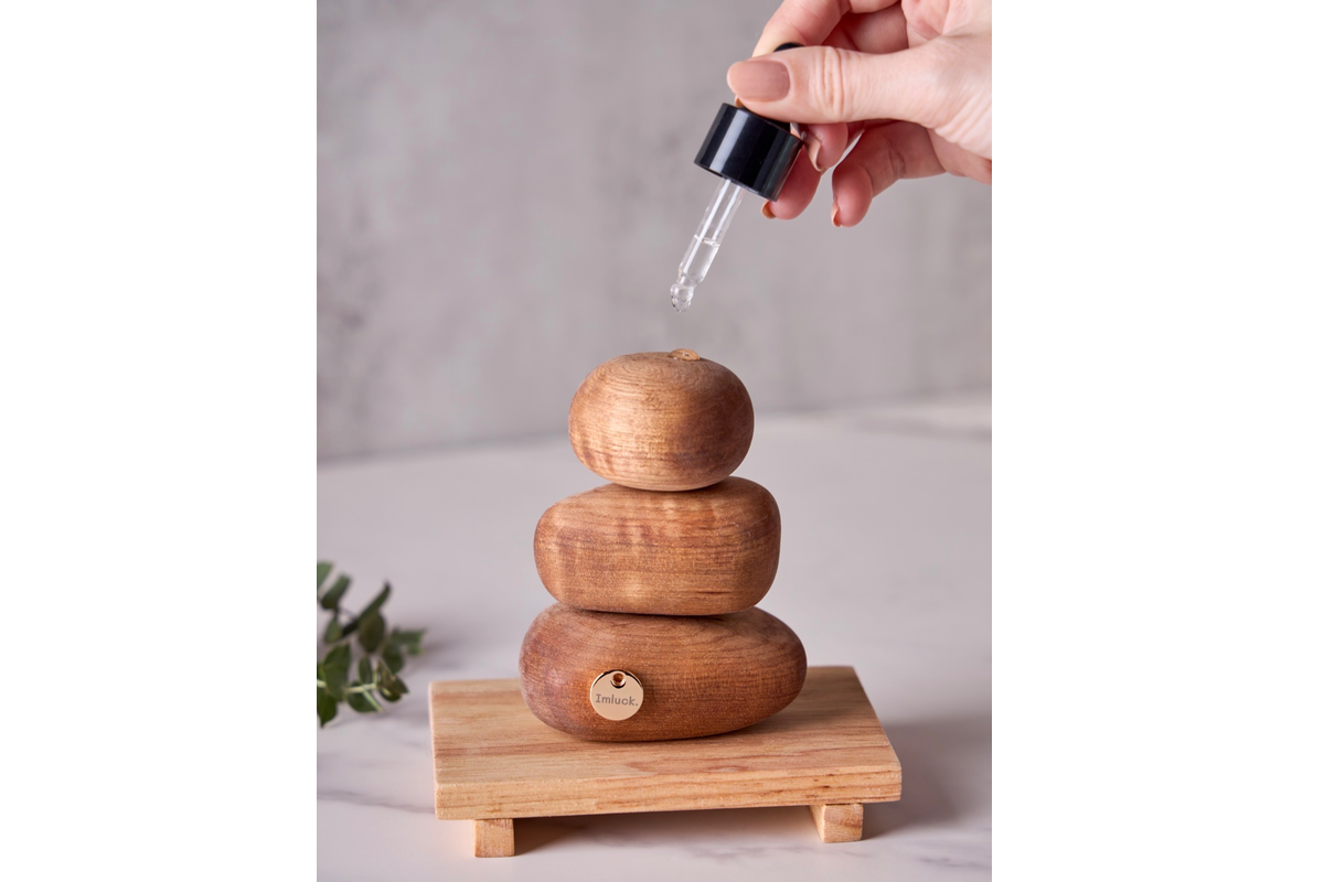 ไม้ตะแบก หนึ่งในไม้มงคลของไทย ที่มีความเชื่อว่า “ค้ำจุน หนุนนำ” ช่วยเสริมความมั่นคง ความไม่ตกต่ำ และเป็นสัญลักษณ์ของความแข็งแรง Imluck. เลือกใช้ไม้ตะแบกจากการรื้อเรือน, ท่อนไม้เก่านำกลับมาปรับรูปทรงใหม่ผ่านงานคราฟต์มือของช่างไม้ฝีมือในทุกขั้นตอน Imluck. พัฒนาดิฟฟิวเซอร์รูปแบบใหม่ที่ผสานศาสตร์ฮวงจุ้ยเข้ากับดีไซน์ที่เรียบง่าย เหมาะกับการใช้งานจริง ทั้งรุ่นรูปทรงตั้งตรงที่สื่อถึงความมั่นคง หนักแน่น และรุ่น NANA (wisdom) Diffuser แรงบันดาลใจจากกองหินที่ซ้อนกันอย่างลงตัว สื่อถึงความนิ่ง ความเกื้อหนุน และสมดุลของชีวิต