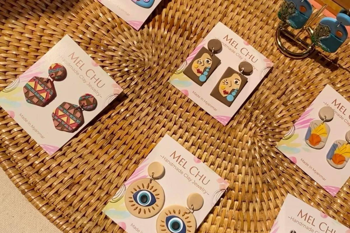 Mel Chu is a small business founded by an artist from Myanmar. The business specializes in creating exquisite handmade clay jewelry. Since its establishment in December 2020, Mel Chu has gained recognition for its unique and intricately designed pieces. The artist behind Mel Chu has participated in various events, including "She Create" organized by The Spain Embassy in Myanmar, and the popular "Youth Economic Event." These experiences have helped artists refine their skills and connect with diverse audiences.