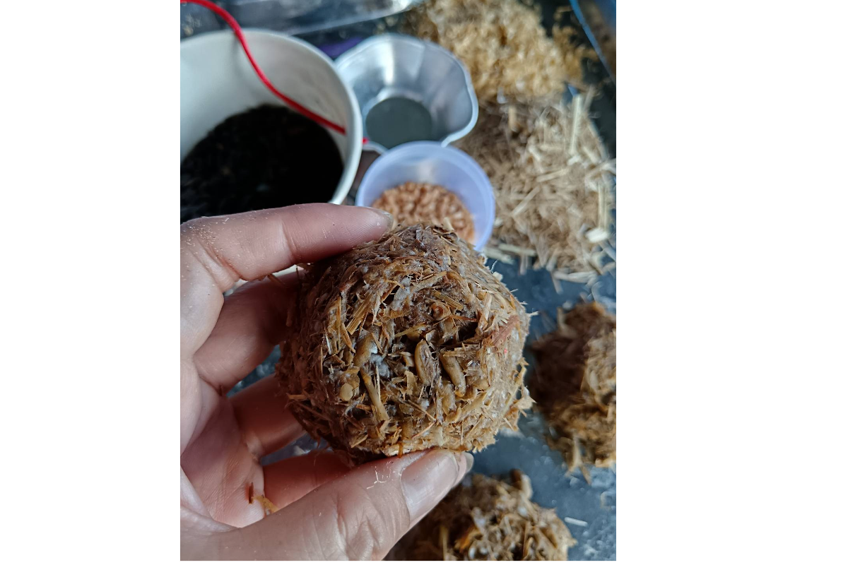 Seed ball activity made from agricultural waste materials. and knowledge of flower seeds so that the Seed Ball can turn a terrifying wasteland into a blooming flower garden.