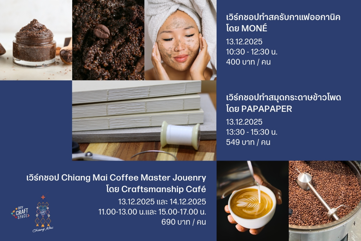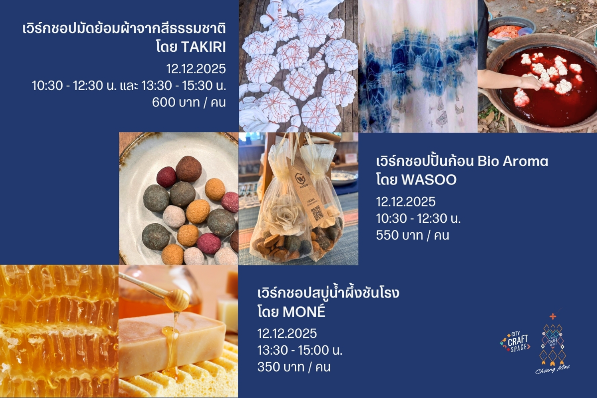This December, we invite you to slow down and rediscover the beauty of mindful living through a series of creative workshops at City Craft Space @ Tha Pae Road, under the theme “Craft, Culture, and Conscious Living.” Here, we open space for you to reconnect with yourself, nature, and others through craft experiences that weave together culture, creativity, and intention.
